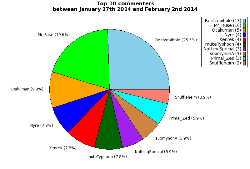 | Top 10 commenters between January 27th 2014 and February 2nd 2014 | ||