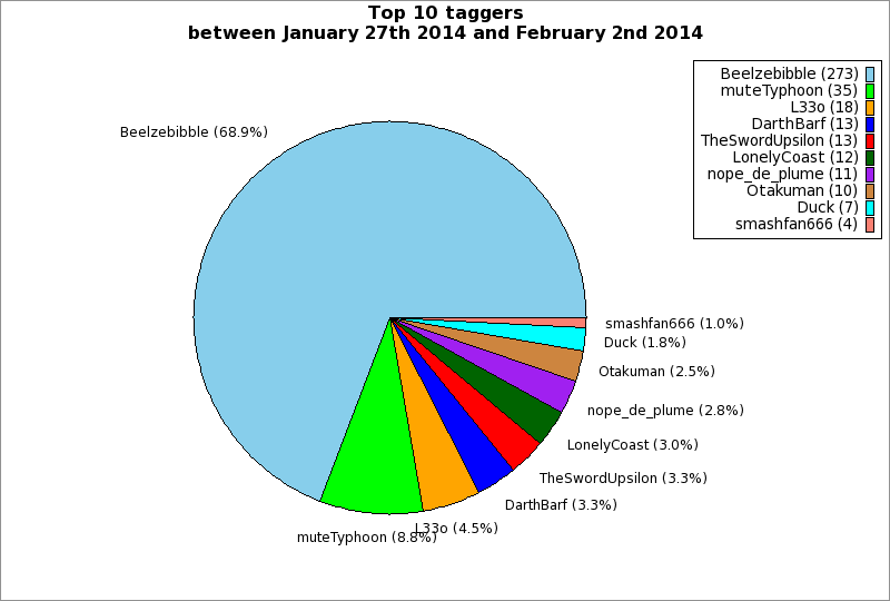 | Top 10 taggers between January 27th 2014 and February 2nd 2014 | ||