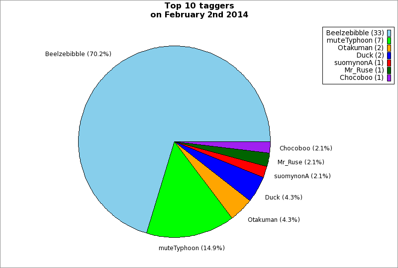 | Top 10 taggers on February 2nd 2014 | ||