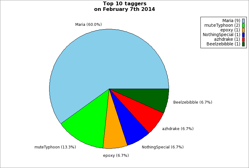 | Top 10 taggers on February 7th 2014 | ||