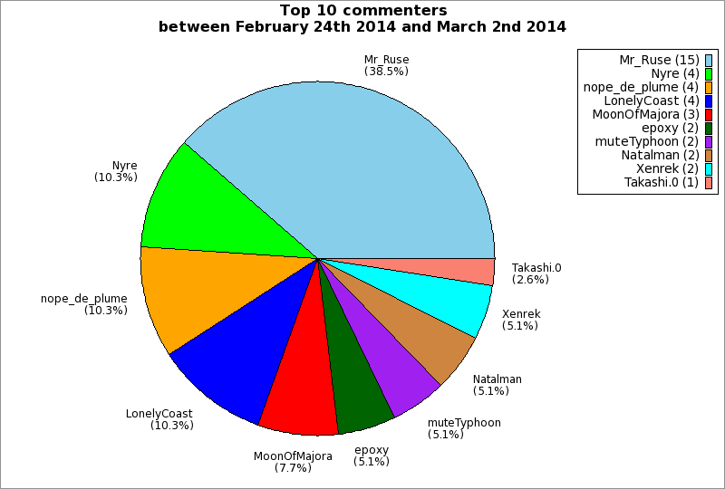 | Top 10 commenters between February 24th 2014 and March 2nd 2014 | ||
