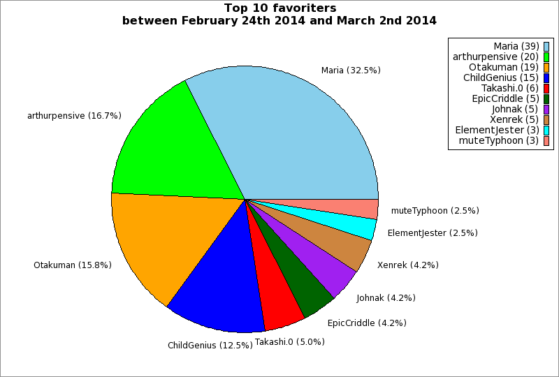 | Top 10 favoriters between February 24th 2014 and March 2nd 2014 | ||