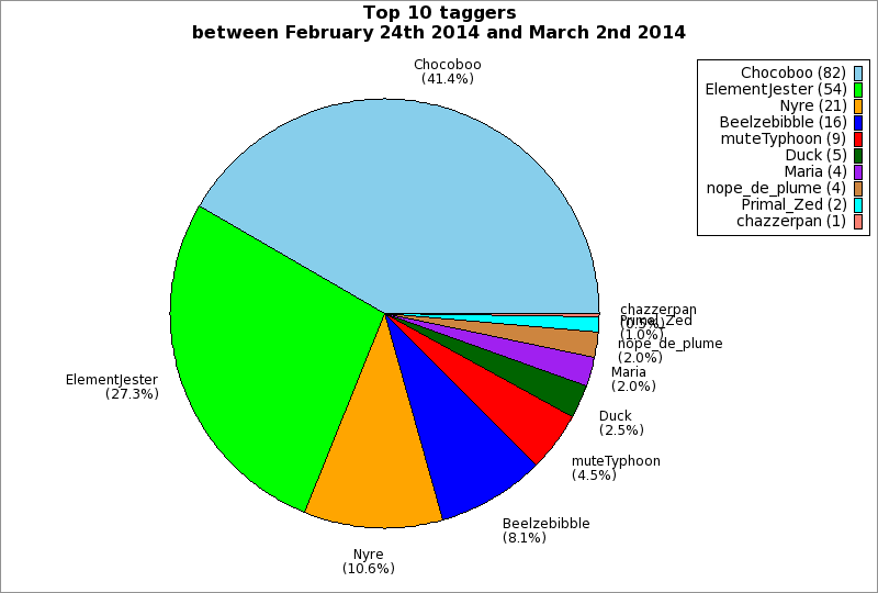 | Top 10 taggers between February 24th 2014 and March 2nd 2014 | ||