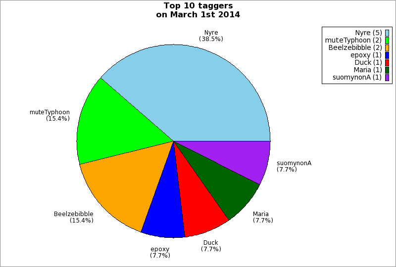 | Top 10 taggers on March 1st 2014 | ||