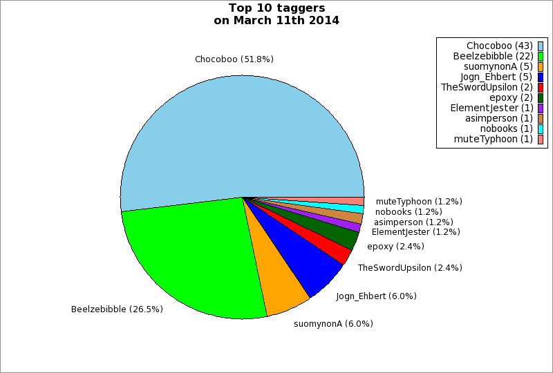| Top 10 taggers on March 11th 2014 | ||