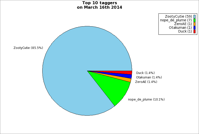 | Top 10 taggers on March 16th 2014 | ||