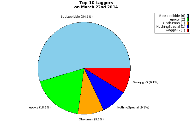 | Top 10 taggers on March 22nd 2014 | ||