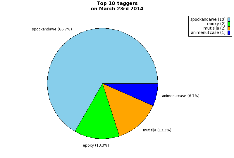 | Top 10 taggers on March 23rd 2014 | ||