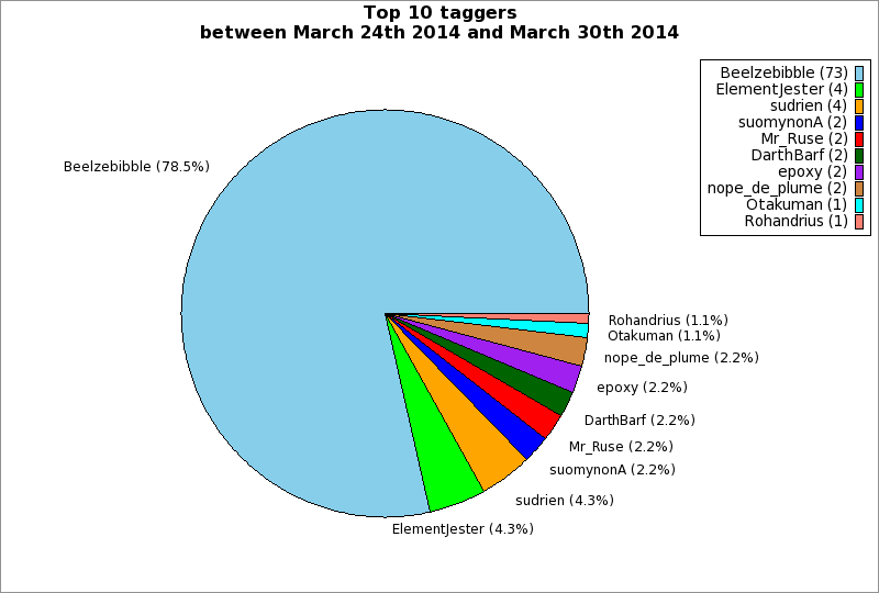 | Top 10 taggers between March 24th 2014 and March 30th 2014 | ||