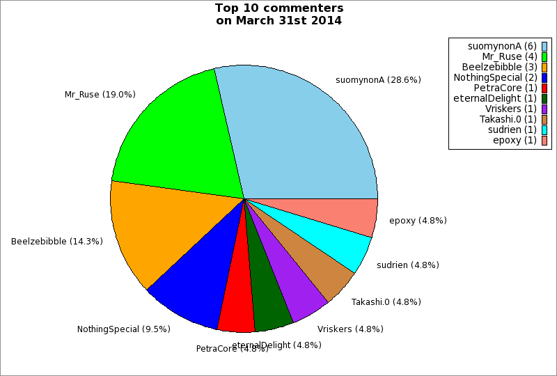 | Top 10 commenters on March 31st 2014 | ||