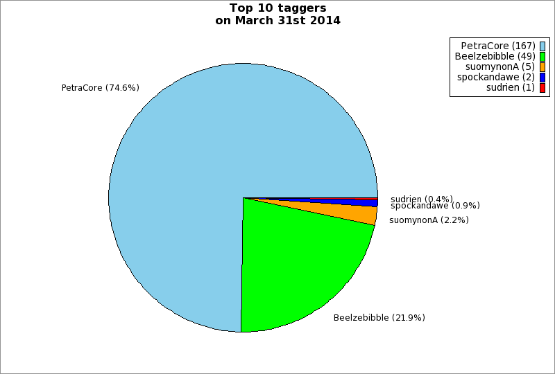 | Top 10 taggers on March 31st 2014 | ||