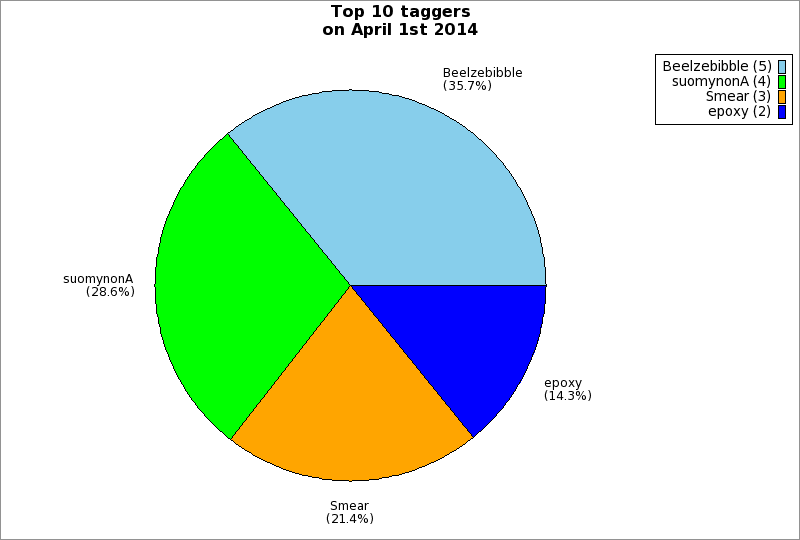 | Top 10 taggers on April 1st 2014 | ||