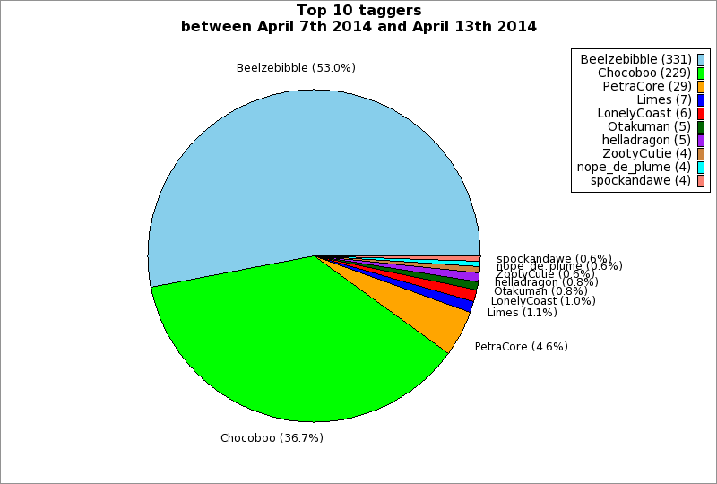| Top 10 taggers between April 7th 2014 and April 13th 2014 | ||