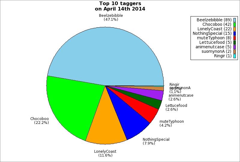 | Top 10 taggers on April 14th 2014 | ||