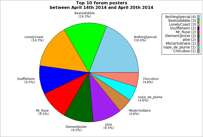 | Top 10 forum posters between April 14th 2014 and April 20th 2014 | ||