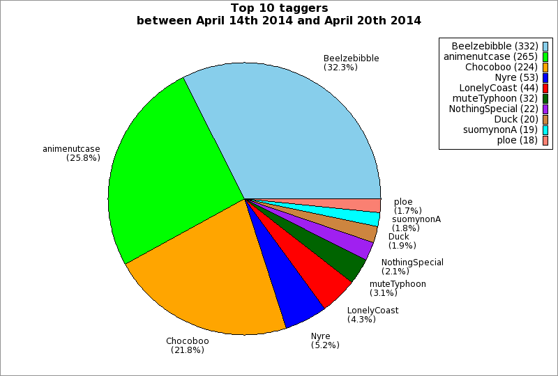 | Top 10 taggers between April 14th 2014 and April 20th 2014 | ||
