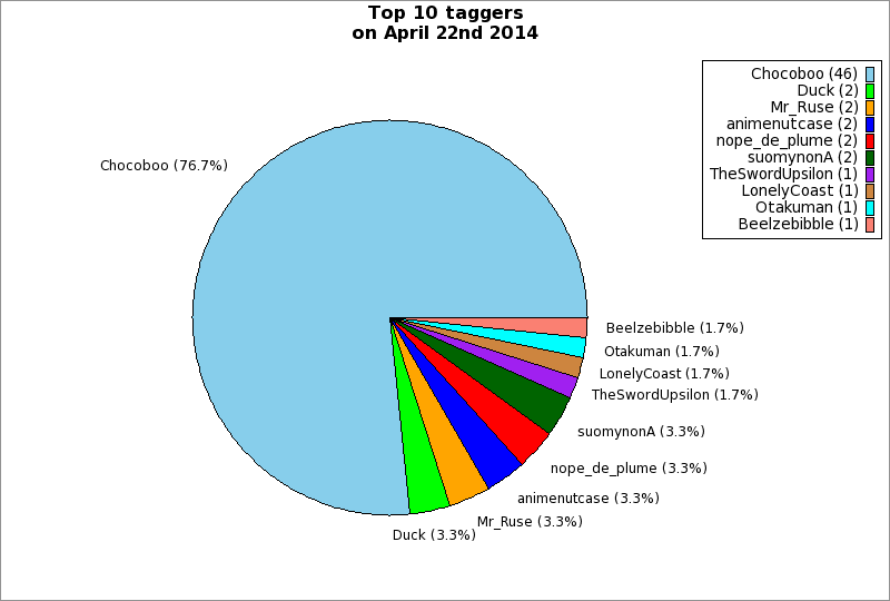 | Top 10 taggers on April 22nd 2014 | ||
