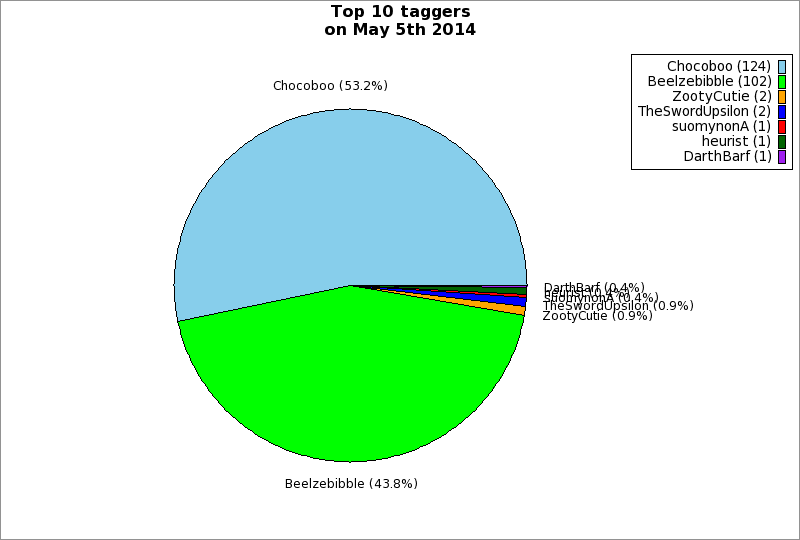 | Top 10 taggers on May 5th 2014 | ||