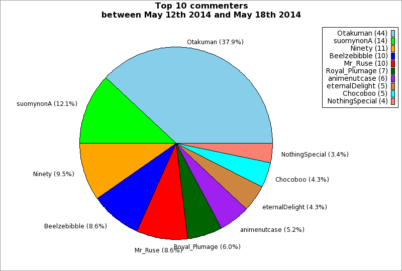 | Top 10 commenters between May 12th 2014 and May 18th 2014 | ||