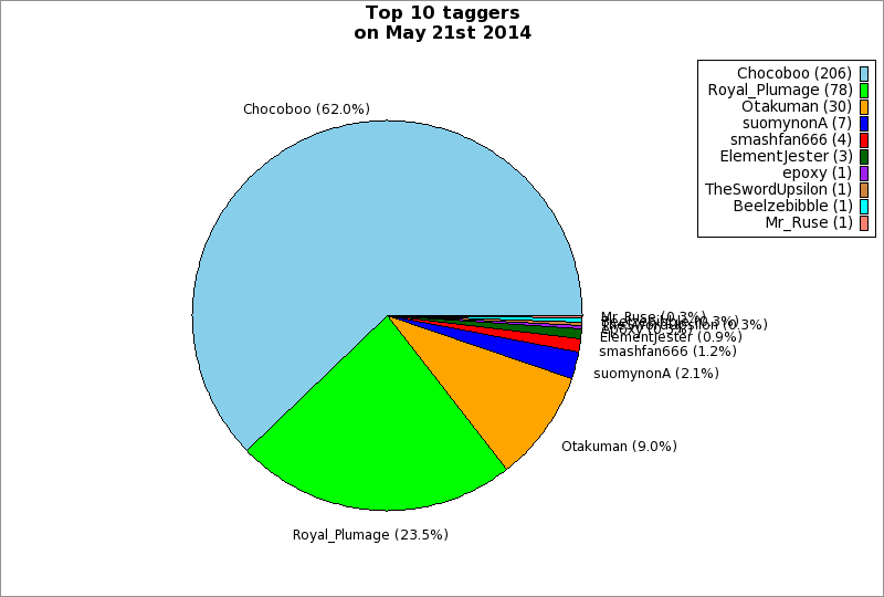 | Top 10 taggers on May 21st 2014 | ||
