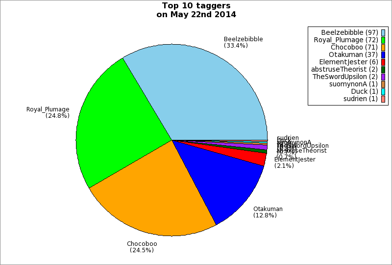 | Top 10 taggers on May 22nd 2014 | ||