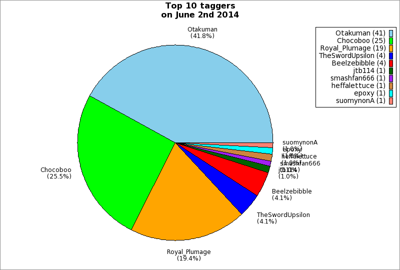 | Top 10 taggers on June 2nd 2014 | ||
