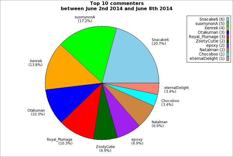 | Top 10 commenters between June 2nd 2014 and June 8th 2014 | ||