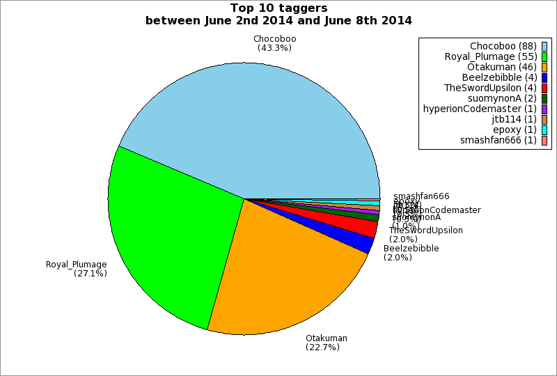 | Top 10 taggers between June 2nd 2014 and June 8th 2014 | ||