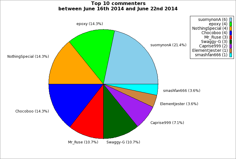 | Top 10 commenters between June 16th 2014 and June 22nd 2014 | ||