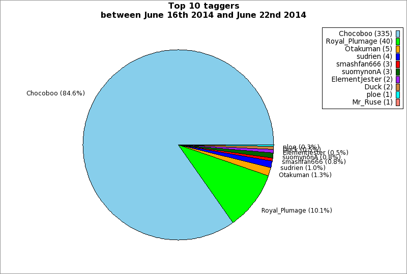 | Top 10 taggers between June 16th 2014 and June 22nd 2014 | ||