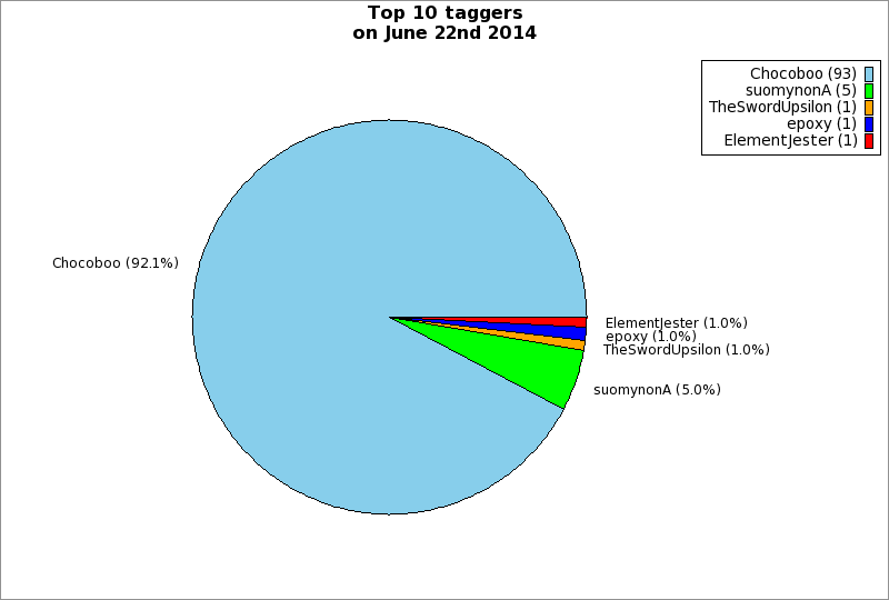 | Top 10 taggers on June 22nd 2014 | ||