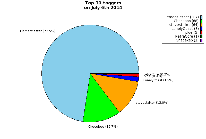 | Top 10 taggers on July 6th 2014 | ||