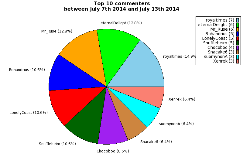 | Top 10 commenters between July 7th 2014 and July 13th 2014 | ||