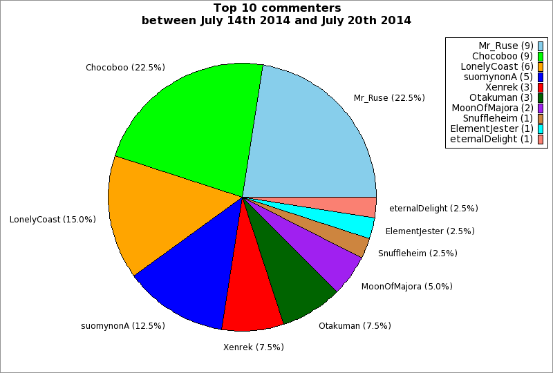 | Top 10 commenters between July 14th 2014 and July 20th 2014 | ||