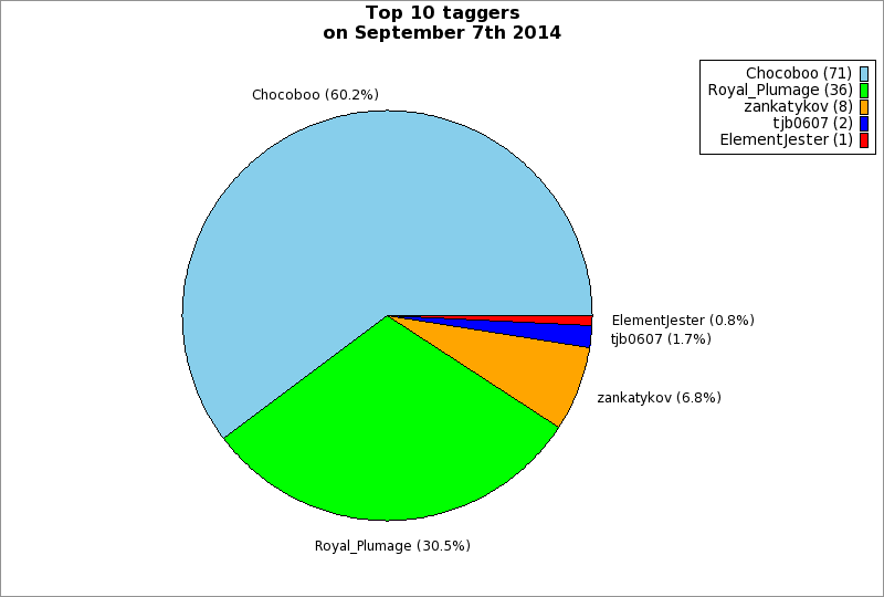 | Top 10 taggers on September 7th 2014 | ||