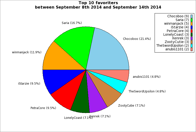 | Top 10 favoriters between September 8th 2014 and September 14th 2014 | ||