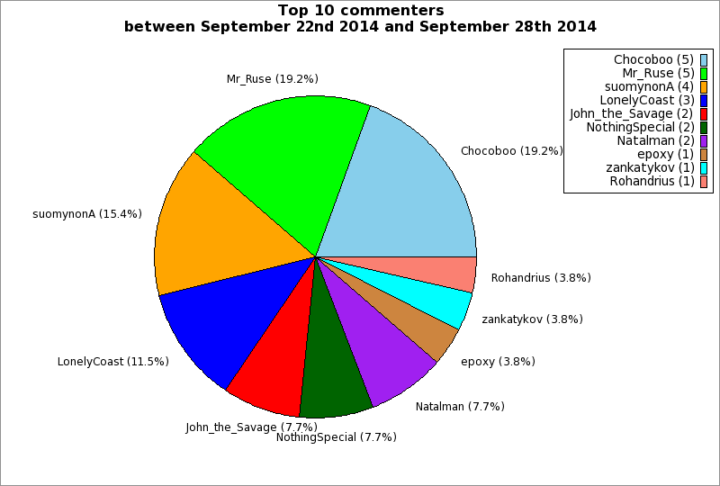 | Top 10 commenters between September 22nd 2014 and September 28th 2014 | ||