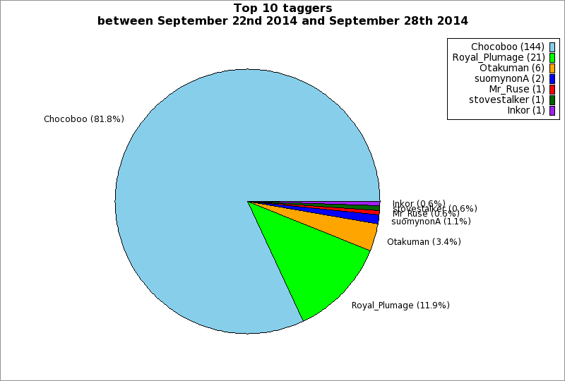 | Top 10 taggers between September 22nd 2014 and September 28th 2014 | ||