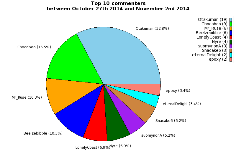 | Top 10 commenters between October 27th 2014 and November 2nd 2014 | ||