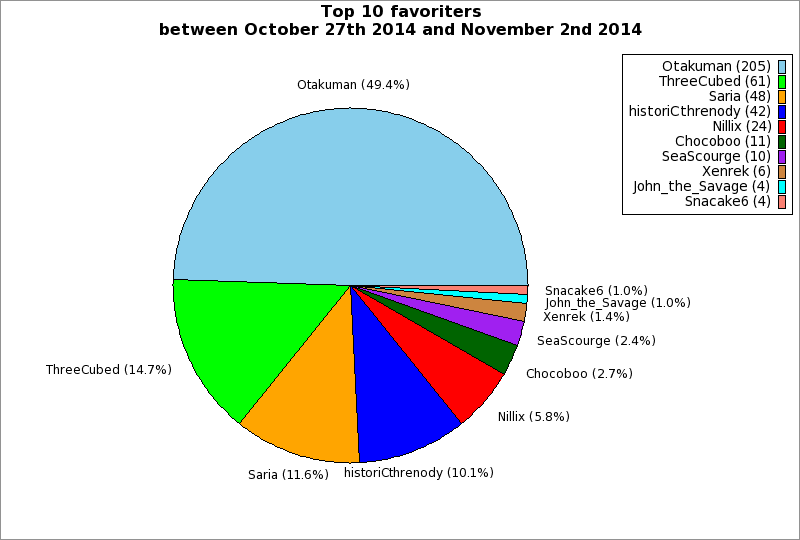 | Top 10 favoriters between October 27th 2014 and November 2nd 2014 | ||