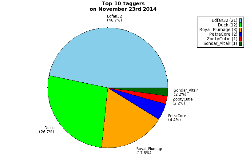 | Top 10 taggers on November 23rd 2014 | ||