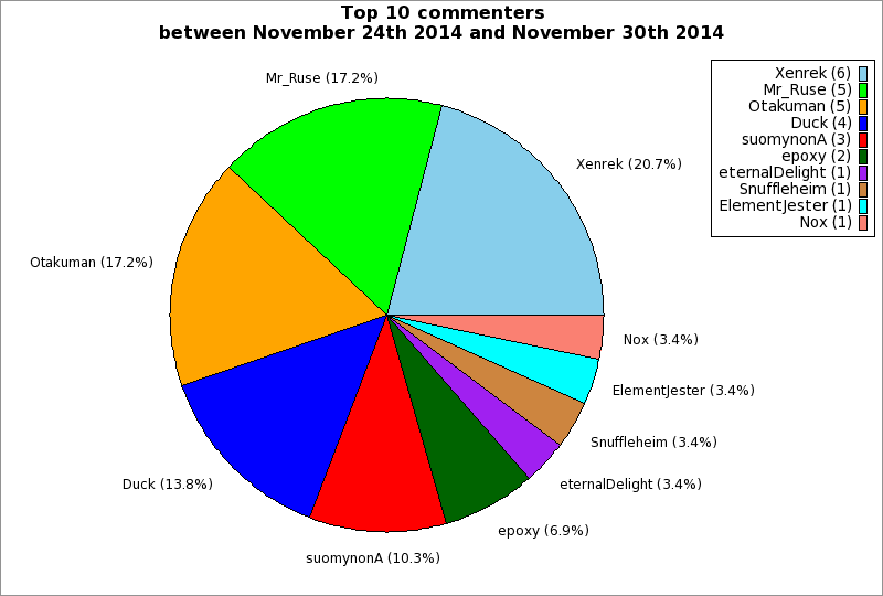| Top 10 commenters between November 24th 2014 and November 30th 2014 | ||