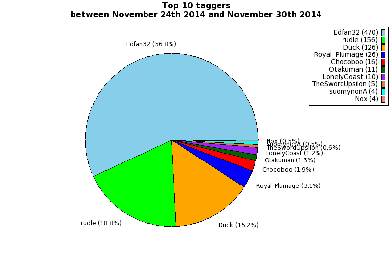 | Top 10 taggers between November 24th 2014 and November 30th 2014 | ||