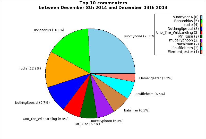| Top 10 commenters between December 8th 2014 and December 14th 2014 | ||