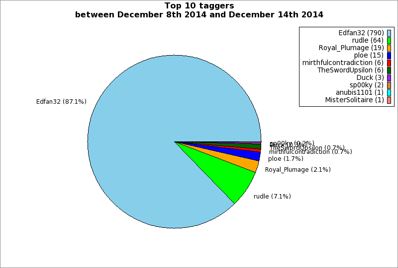 | Top 10 taggers between December 8th 2014 and December 14th 2014 | ||