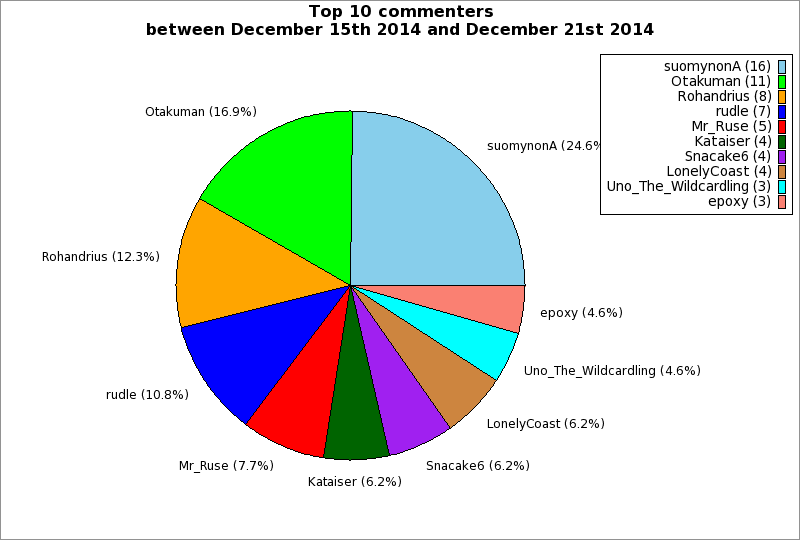 | Top 10 commenters between December 15th 2014 and December 21st 2014 | ||