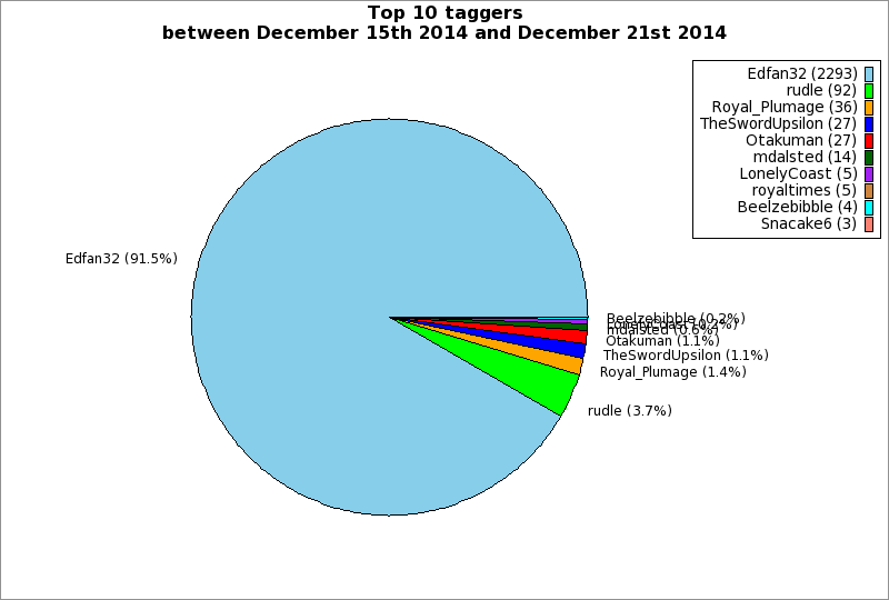 | Top 10 taggers between December 15th 2014 and December 21st 2014 | ||