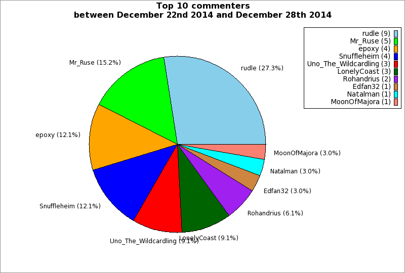 | Top 10 commenters between December 22nd 2014 and December 28th 2014 | ||