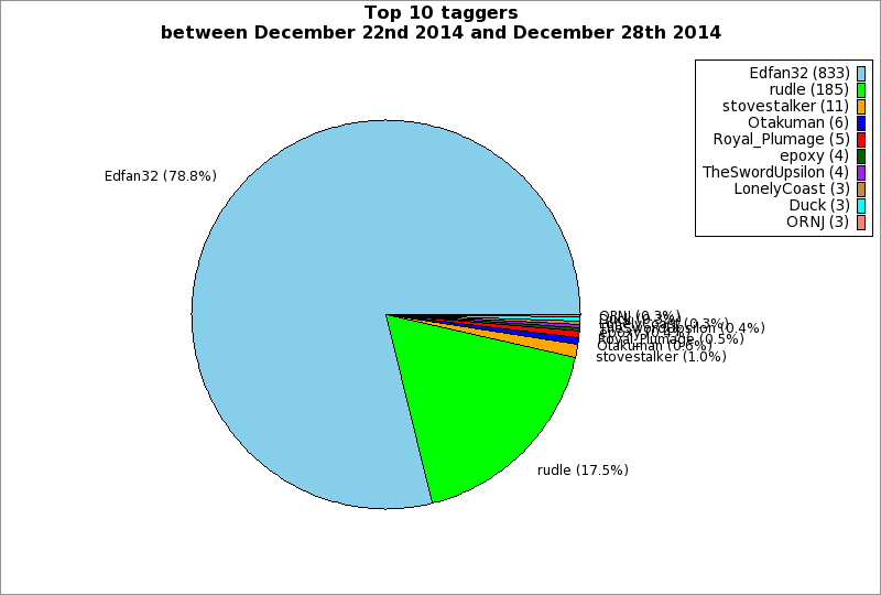 | Top 10 taggers between December 22nd 2014 and December 28th 2014 | ||