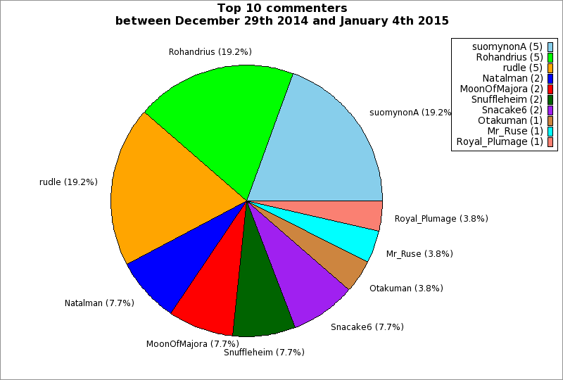 | Top 10 commenters between December 29th 2014 and January 4th 2015 | ||